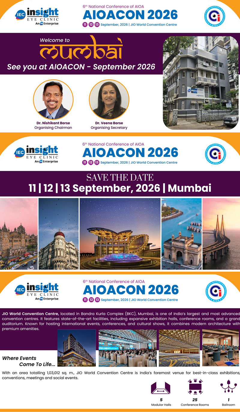 Association of Indian Ophthalmic Anaesthesiologists, AIOA, is an organization wherein Surgeons, Anaesthesiologists practising Ophthalmic anaesthesia and Clinicians involved in eye care can share their views, update their knowledge in the field and thereby promote a high standard of patient care in patients undergoing any type of eye surgery.