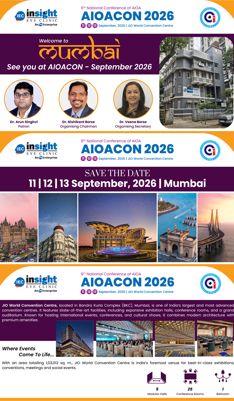 The idea of forming Association of Indian Ophthalmic Anaesthesiologists, AIOA, was mainly mooted from Ophthalmic Forum of Indian Society of Anaesthesiologists, OFISA, affiliated to Indian Society of Anaesthesiologists (ISA). Read More...